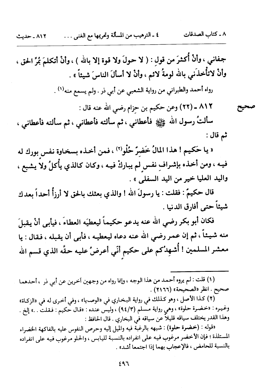 812 - (22) [صحيح] وعن حكيم بن حِزام رضي الله عنه قال: