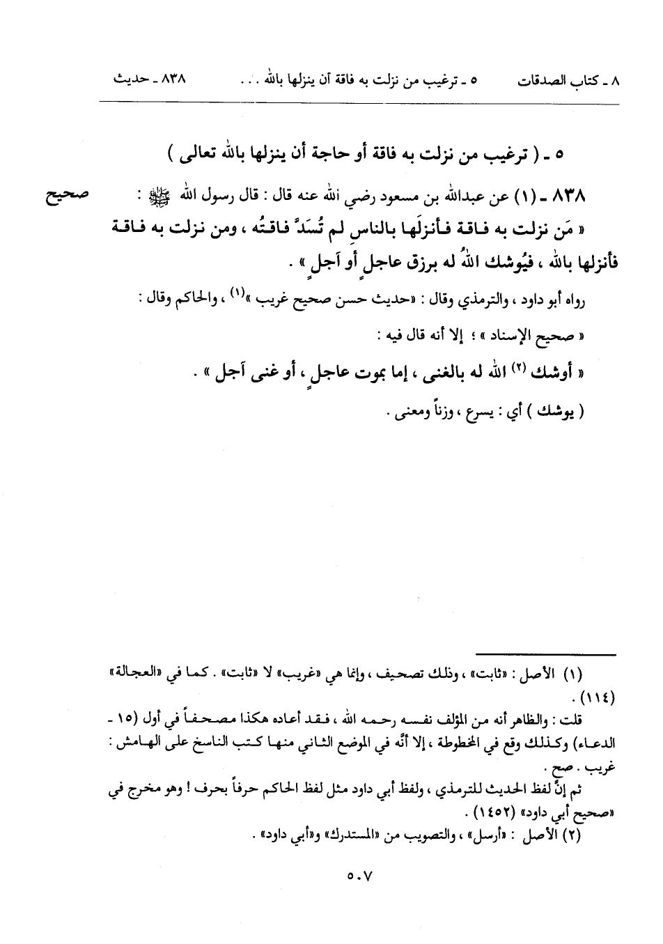 5 - (ترغيب من نزلت به فاقة أو حاجة أن ينزلها بالله تعالى).