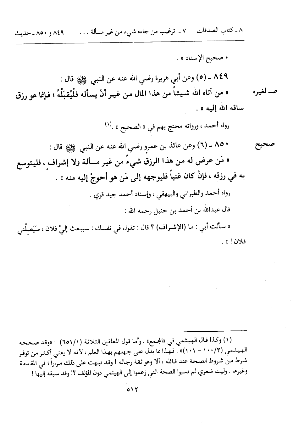 "سألت أبي: ما (الإشراف)؟ قال: تقول في نفسك: سيبعث إليَّ فلان، سَيَصِلُني فلان! ".