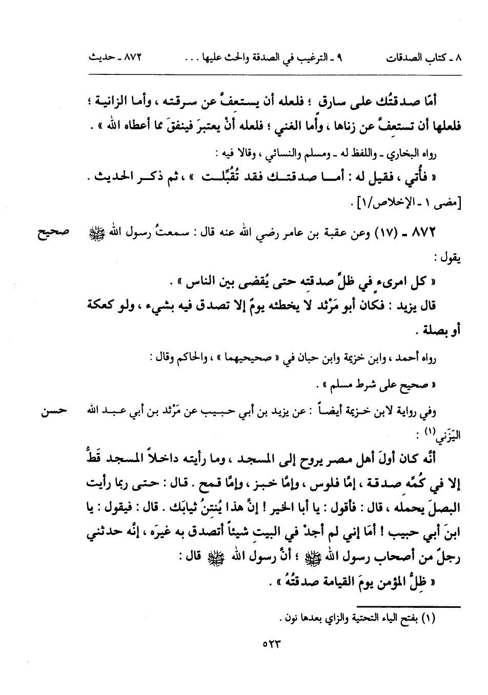 "كل امرئٍ في ظلٍّ صدقتِه حتى يُقضى بين الناس".