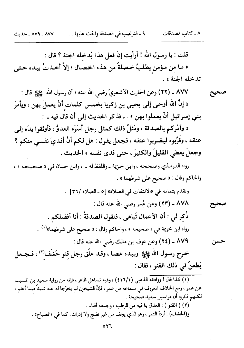 877 - (22) [صحيح] وعن الحارث الأشعريّ رضي الله عنه؛ أن رسول الله - صَلَّى اللهُ عَلَيْهِ وَسَلَّمَ - قال: