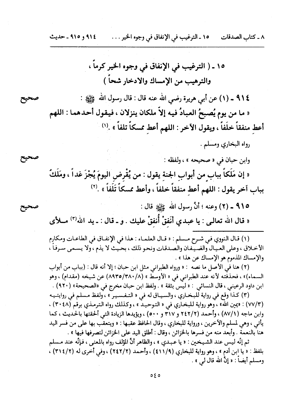 15 - (الترغيب في الإنفاق في وجوه الخير كرماً، والترهيب من الإمساك والادخار شحاً).