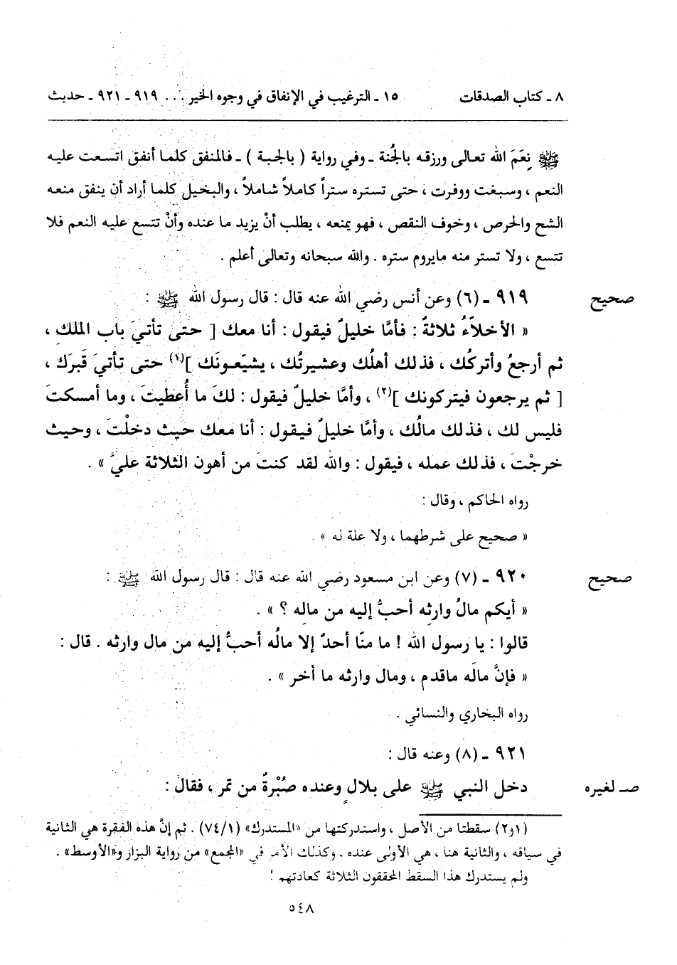 920 - (7) [صحيح] وعن ابن مسعود رضي الله عنه قال: قال رسول الله - صَلَّى اللهُ عَلَيْهِ وَسَلَّمَ -: