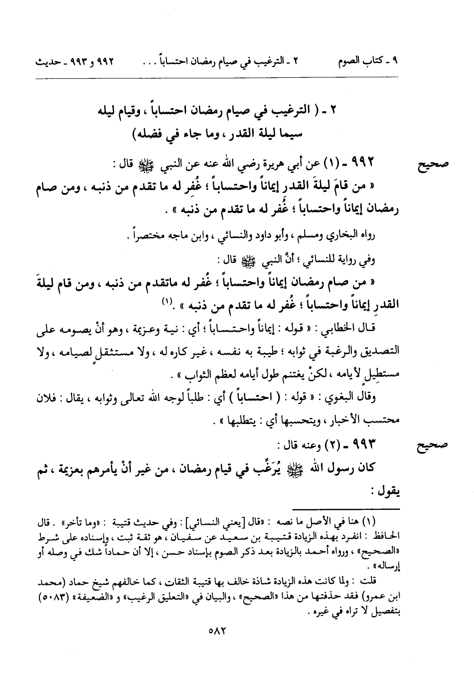 2 - (الترغيب في صيام رمضان احتساباً، وقيام ليله سيما ليلة القدر، وما جاء في فضله).