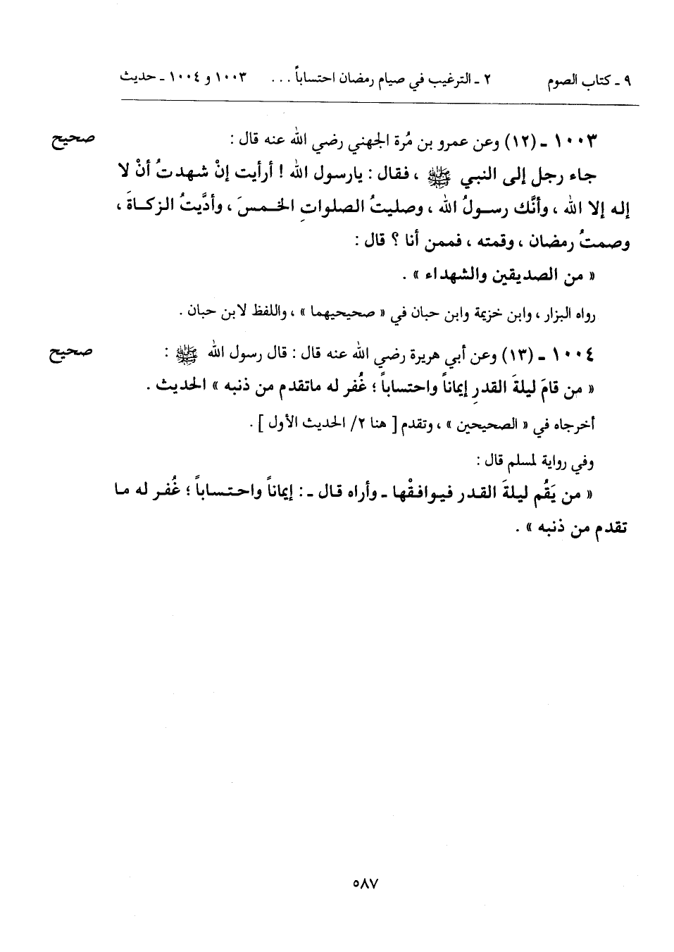 1003 - (12) [صحيح] وعن عمرو بن مُرة الجهني رضي الله عنه قال:
