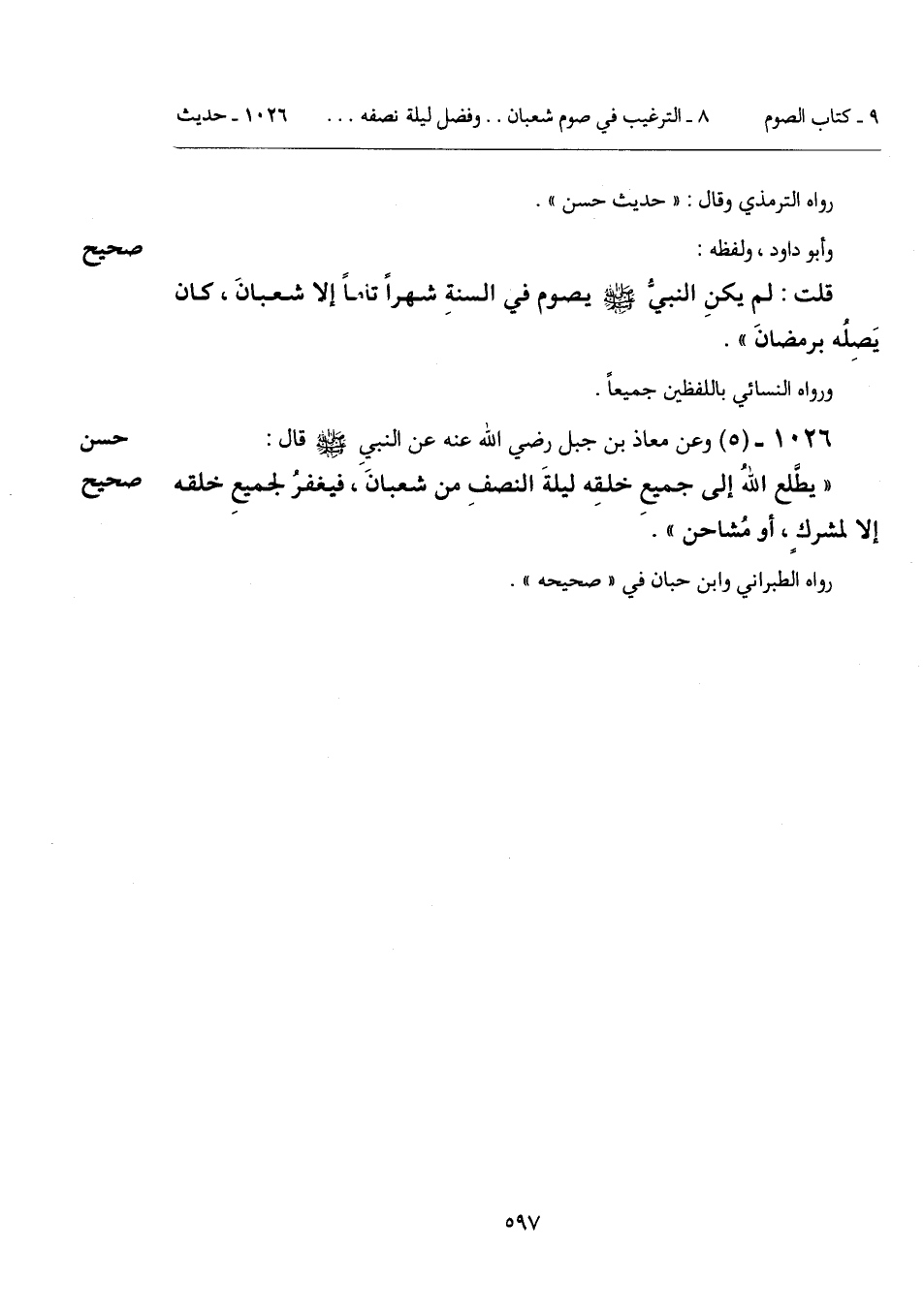 1026 - (5) [حسن صحيح] وعن معاذ بن جبل رضي الله عنه عن النبيِّ - صَلَّى اللهُ عَلَيْهِ وَسَلَّمَ - قال: