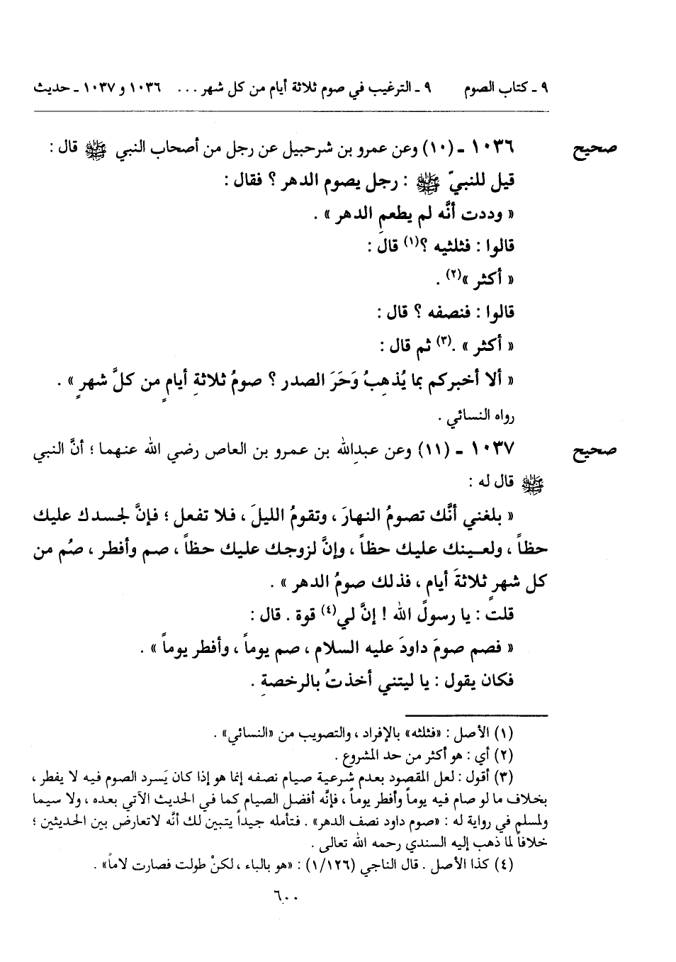 1037 - (11) [صحيح] وعن عبدِ الله بن عمرو بن العاص رضي الله عنهما؛ أنَّ النبي - صَلَّى اللهُ عَلَيْهِ وَسَلَّمَ - قال له: