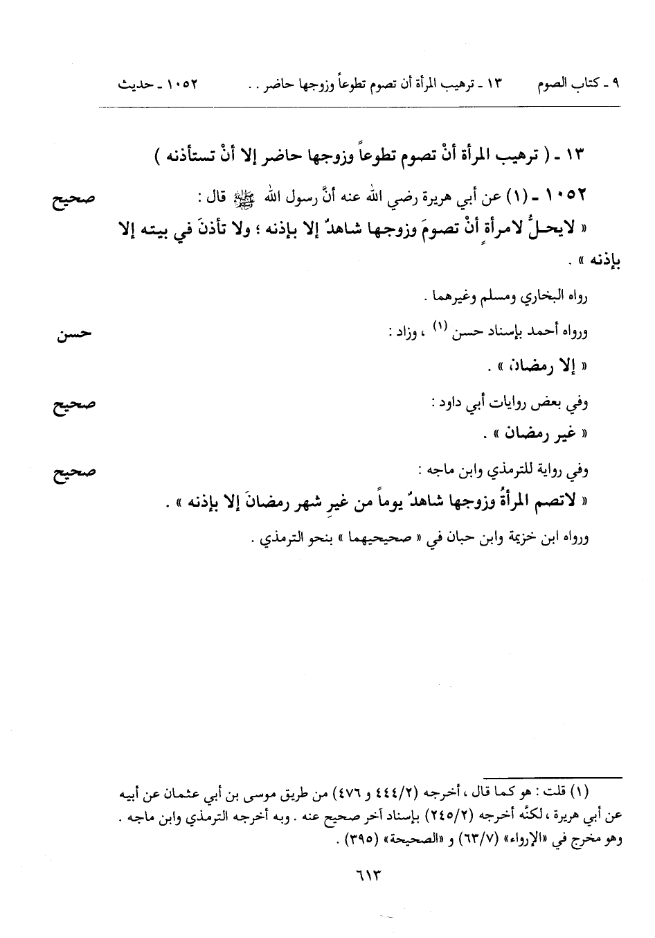 13 - (ترهيب المرأة أنْ تصوم تطوعاً وزوجها حاضر إلا أنْ تستأذنه).