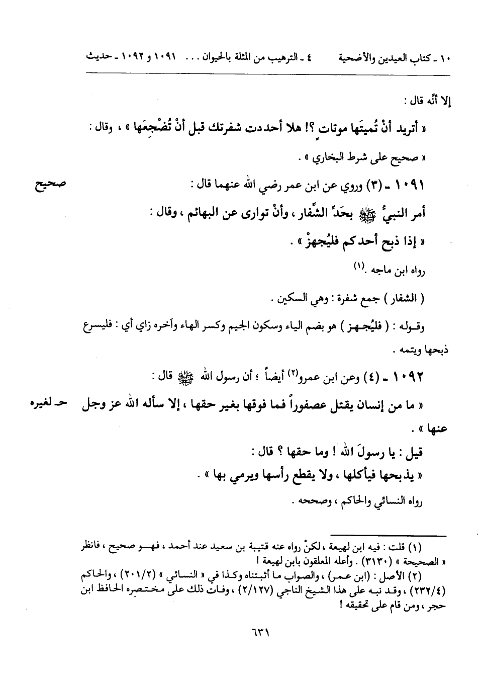1091 - (3) [صحيح] وروي عن ابن عمر رضي الله عنهما قال: