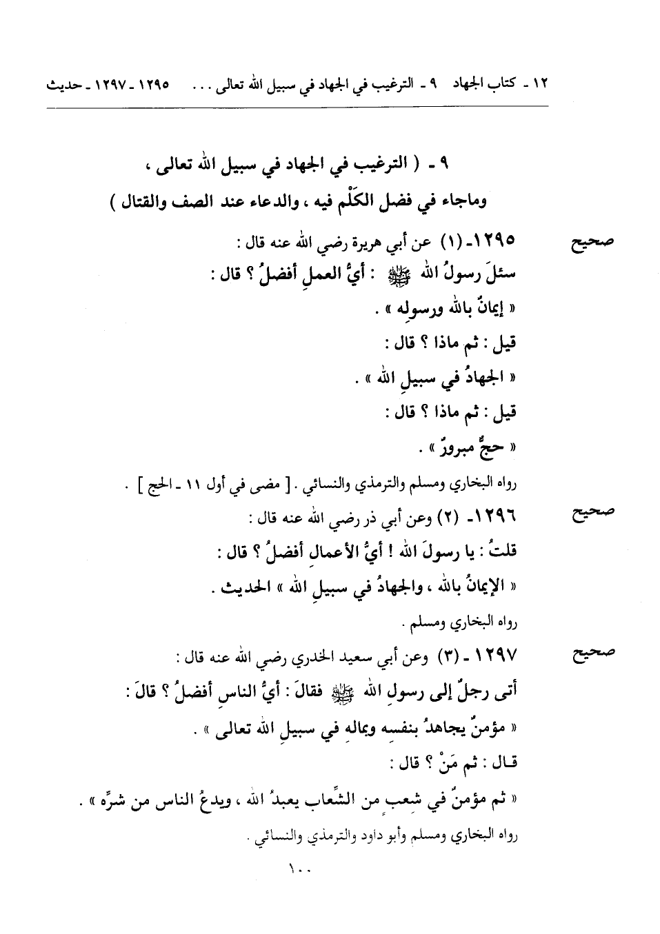 9 - (الترغيب في الجهاد في سبيل الله تعالى، وما جاء في فضل الكَلْم فيه، والدعاء عند الصف والقتال).