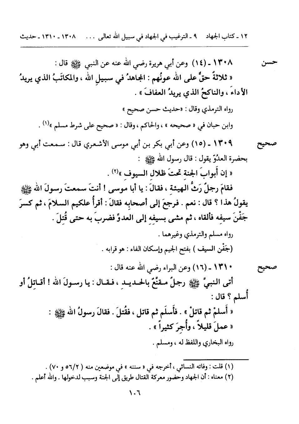 1308 - (14) [حسن] وعن أبي هريرة رضي الله عنه عن النبي - صَلَّى اللهُ عَلَيْهِ وَسَلَّمَ - قال: