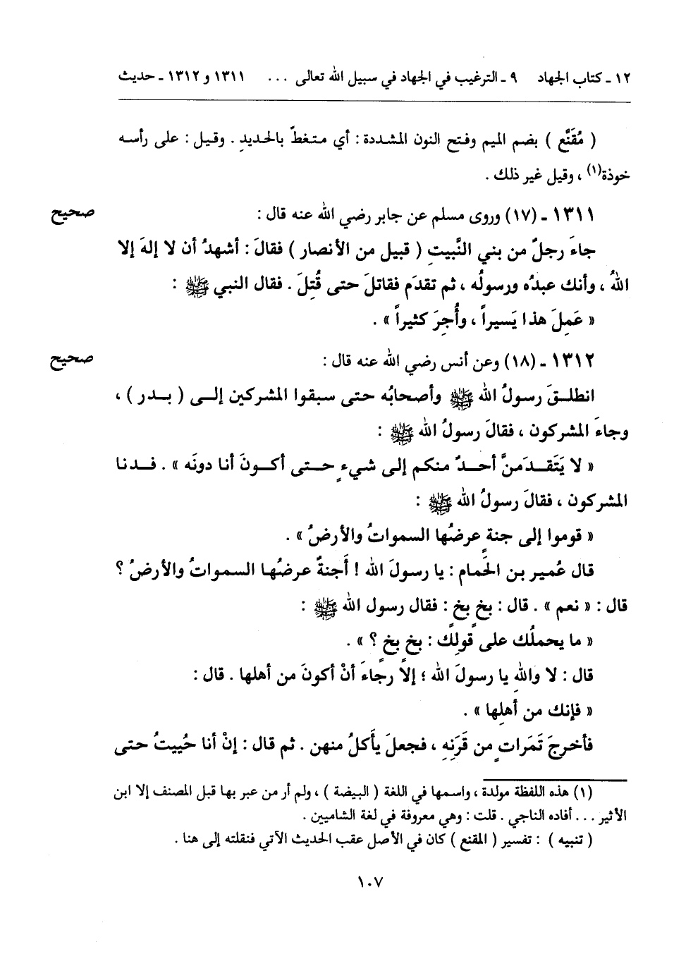 1311 - (17) [صحيح] وروى مسلم عن جابر رضي الله عنه قال: