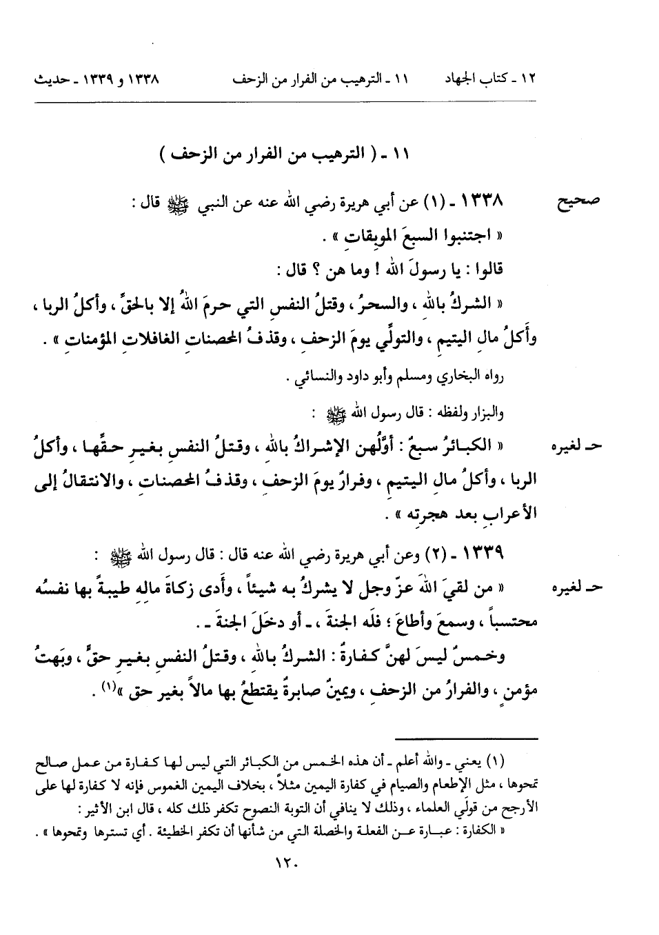 1338 - (1) [صحيح] عن أبي هريرة رضي الله عنه عن النبي - صَلَّى اللهُ عَلَيْهِ وَسَلَّمَ - قال:
