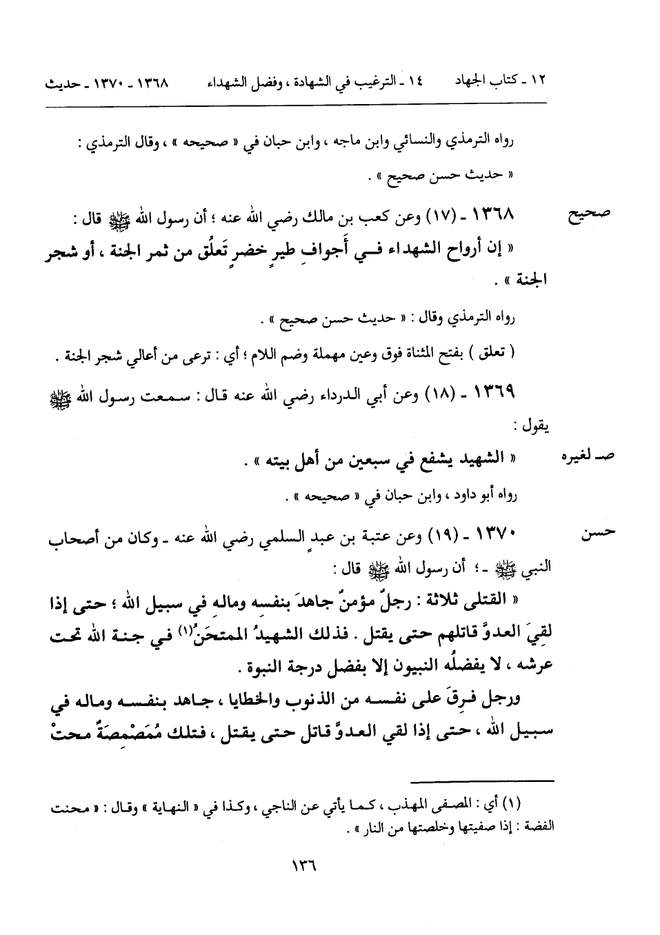 1368 - (17) [صحيح] وعن كعب بن مالك رضي الله عنه؛ أن رسول الله - صَلَّى اللهُ عَلَيْهِ وَسَلَّمَ - قال: