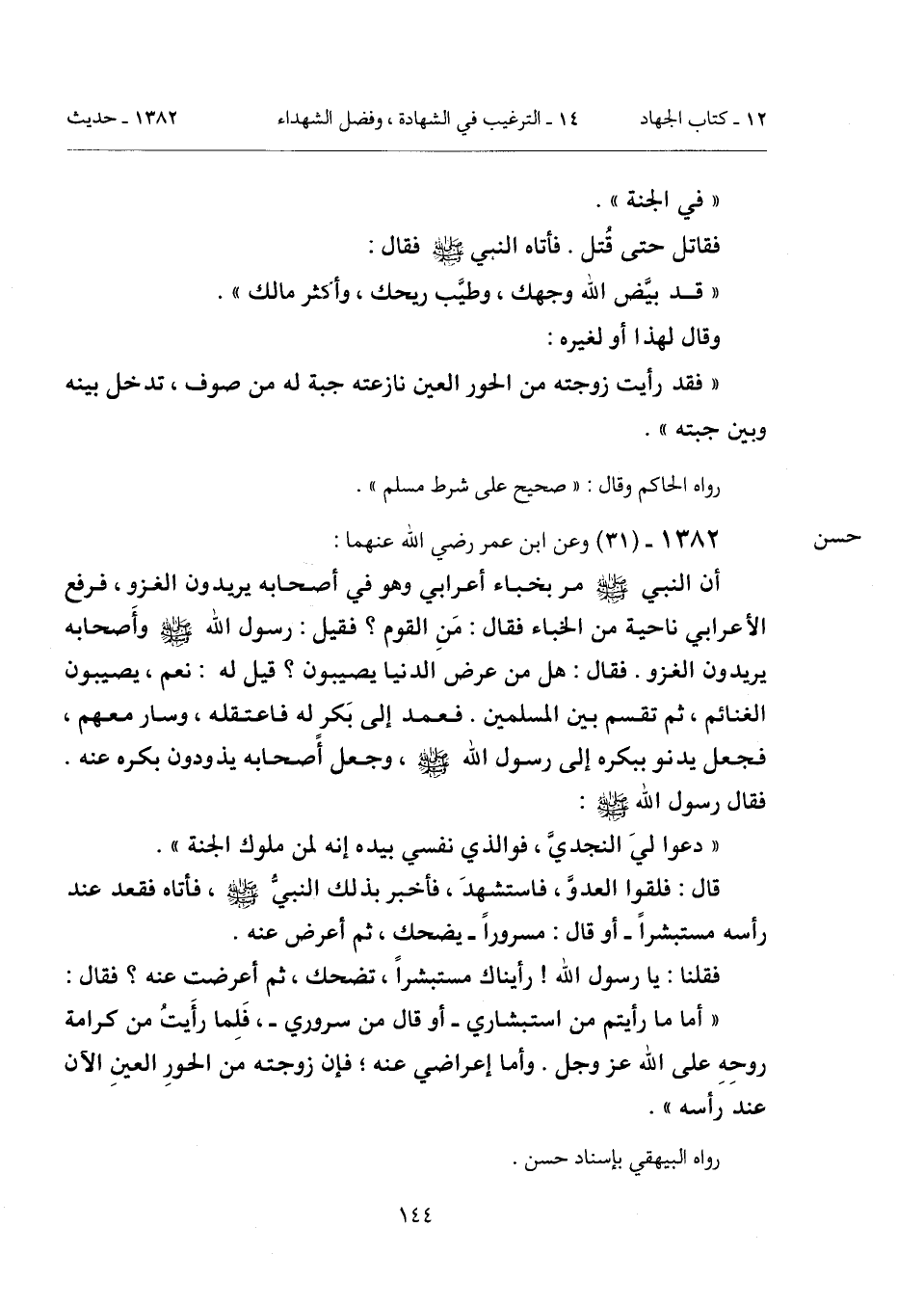 1382 - (31) [حسن] وعن ابن عمر رضي الله عنهما: