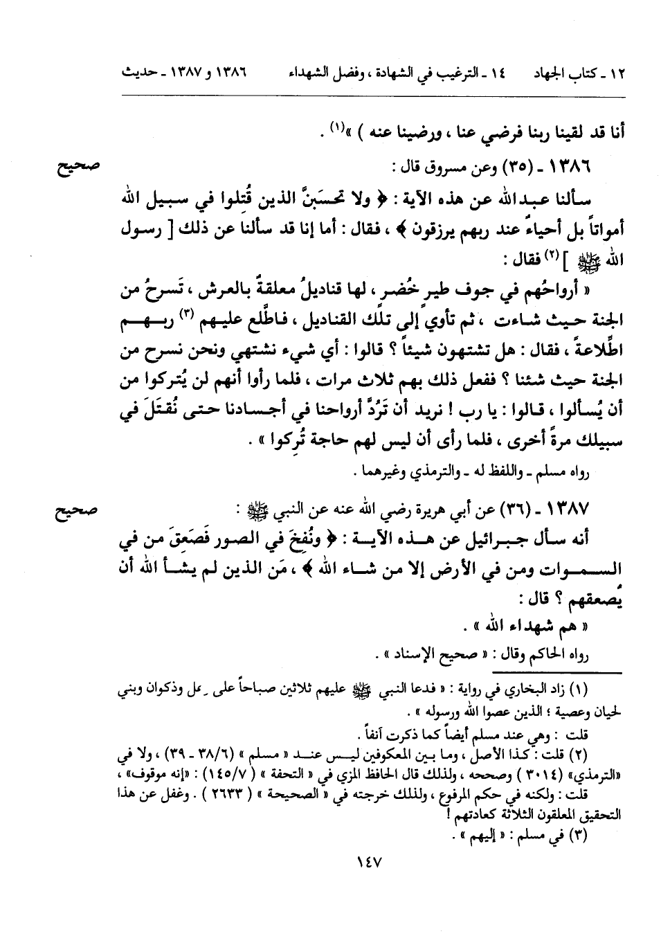(¬2) قلت: كذا الأصل، وما بين المعكوفين ليس عند "مسلم" (6/ 38 - 39)، ولا في "الترمذي" (3014) وصححه، ولذلك قال الحافظ المزي في "التحفة" (7/ 145): "إنه موقوف"، قلت: ولكنه في حكم المرفوع، ولذلك خرجته في "الصحيحة" (2633). وغفل عن هذا التحقيق المعلقون الثلاثة كعادتهم!