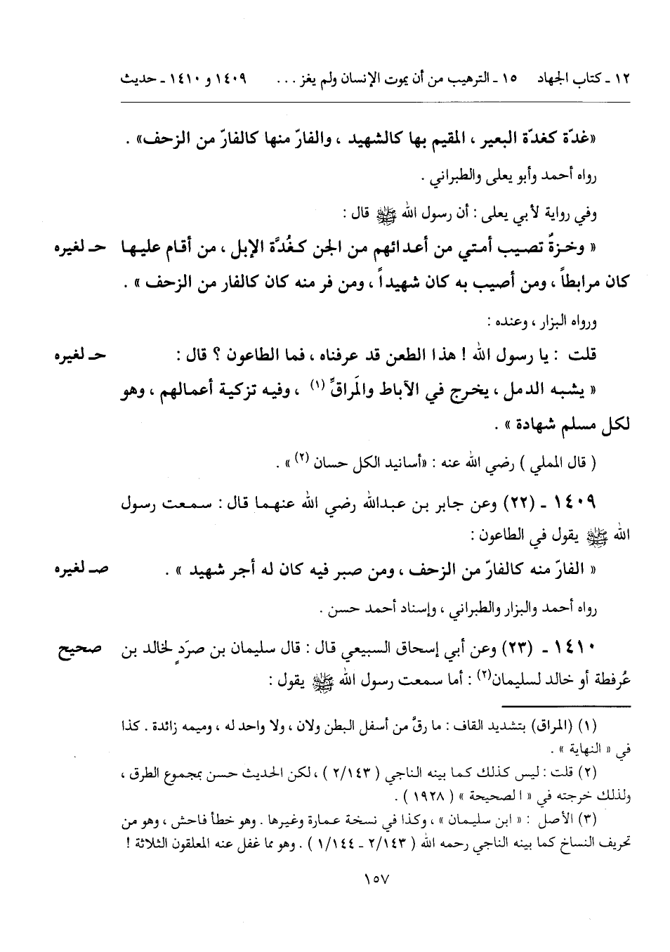1410 - (23) [صحيح] وعن أبي إسحاق السبيعي قال: قال سليمان بن صرَدٍ لخالد بن عُرفطة أو خالد لسليمان (¬3): أما سمعت رسول الله - صَلَّى اللهُ عَلَيْهِ وَسَلَّمَ - يقول: