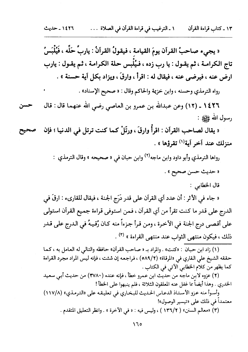 1426 - (12) [حسن صحيح] وعن عبد الله بن عمرو بن العاصي رضي الله عنهما قال: قال رسول الله - صَلَّى اللهُ عَلَيْهِ وَسَلَّمَ -: