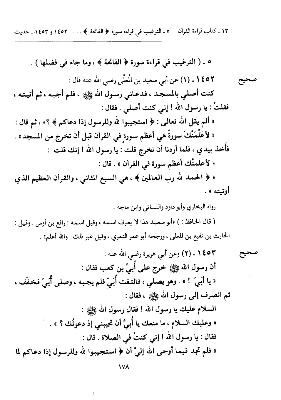 1452 - (1) [صحيح] عن أبي سعيد بن المُعلَّى رضي الله عنه قال:
