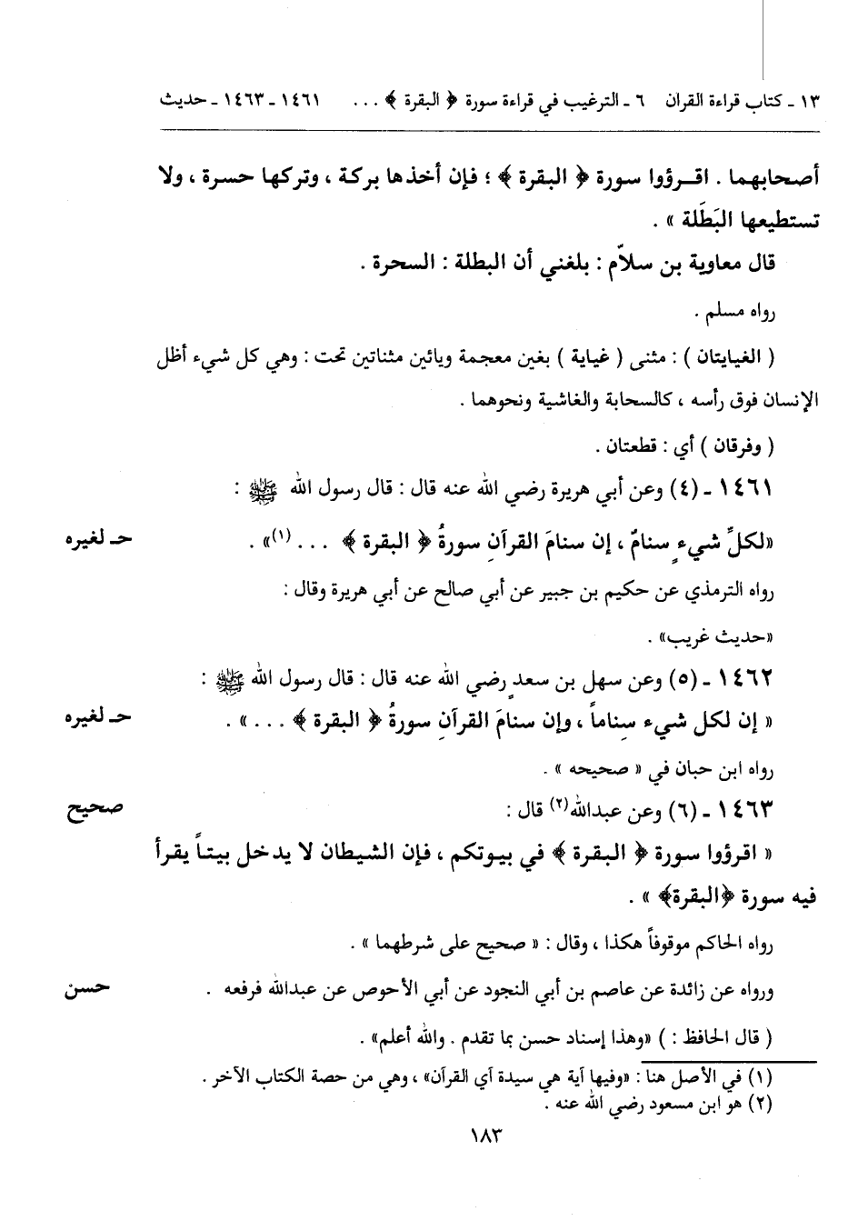"لكلِّ شيءٍ سنامٌ، إن سنامَ القرآنِ سورةُ {البقرة}. . . (¬1) ".