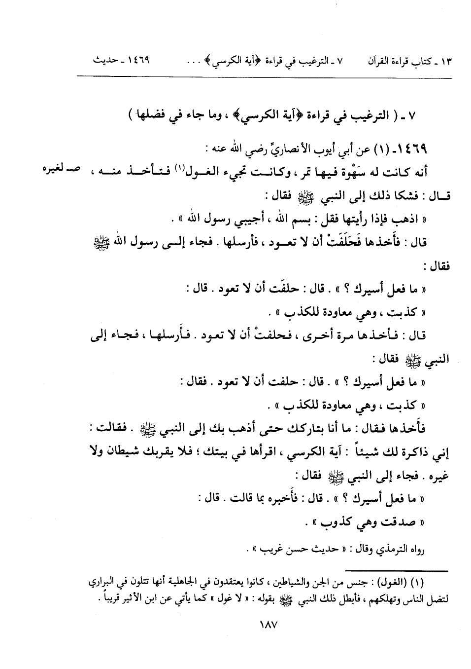 7 - (الترغيب في قراءة {آية الكرسي}، وما جاء في فضلها).