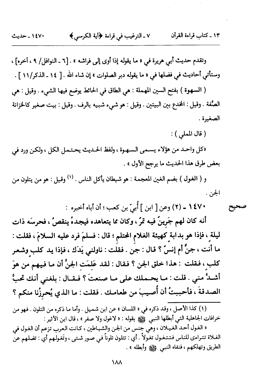 وتقدم حديث أبي هريرة في "ما يقوله إذا أوى إلى فراشه". [6 - النوافل/ 9، آخره]، وستأتي أحاديث في فضلها في "ما يقوله دبر الصلوات" إن شاء الله. [14 - الذكر/11].