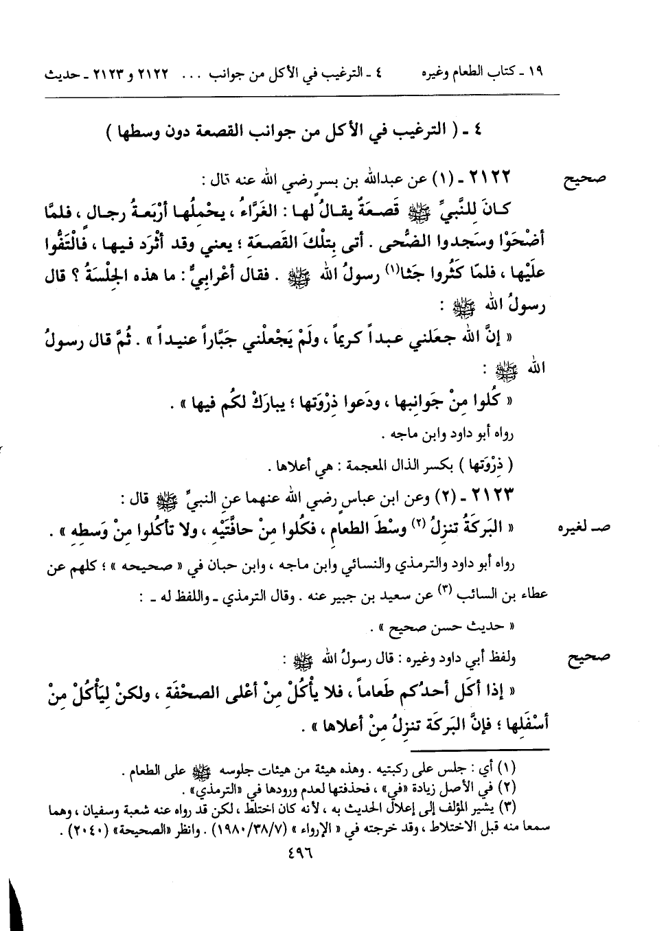 4 - (الترغيب في الأكل من جوانب القصعة دون وسطها).