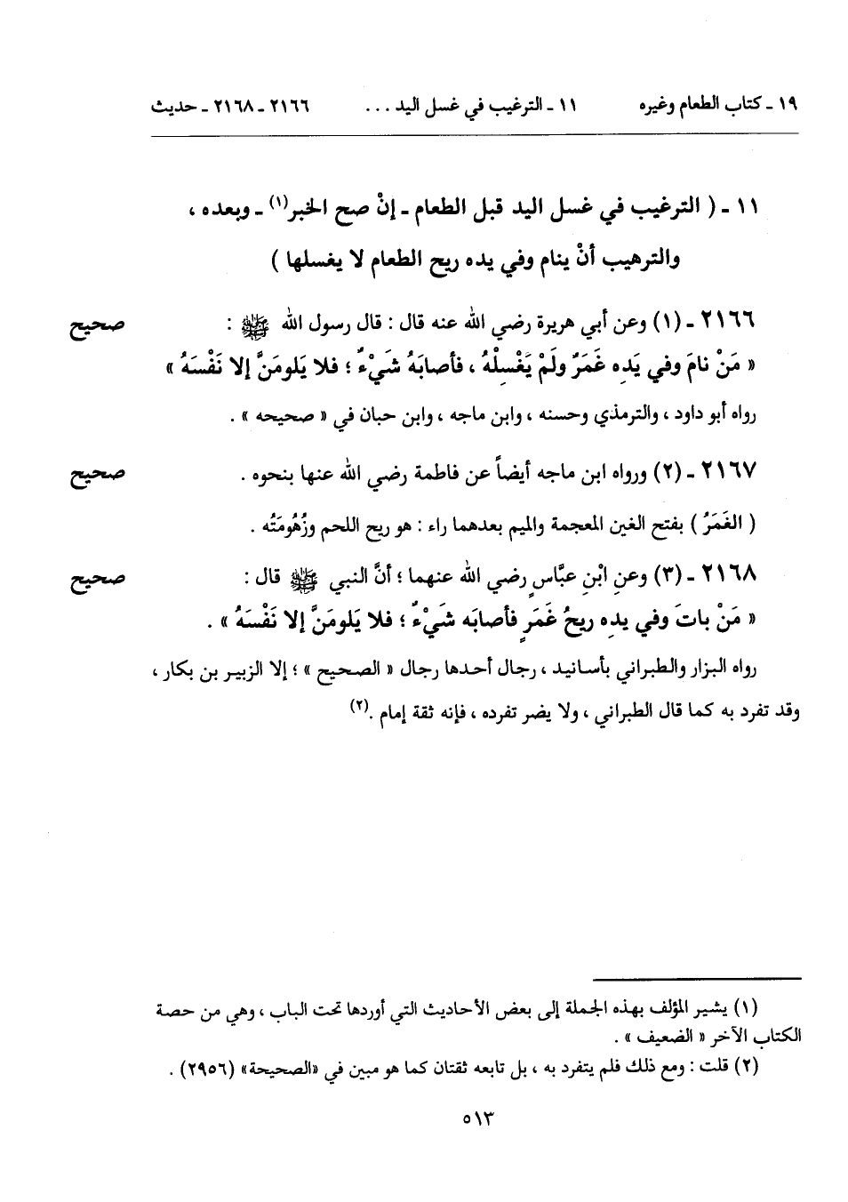 (¬1) يشير المؤلف بهذه الجملة إلى بعض الأحاديث التي أوردها تحت الباب، وهي من حصة الكتاب الآخر "الضعيف".