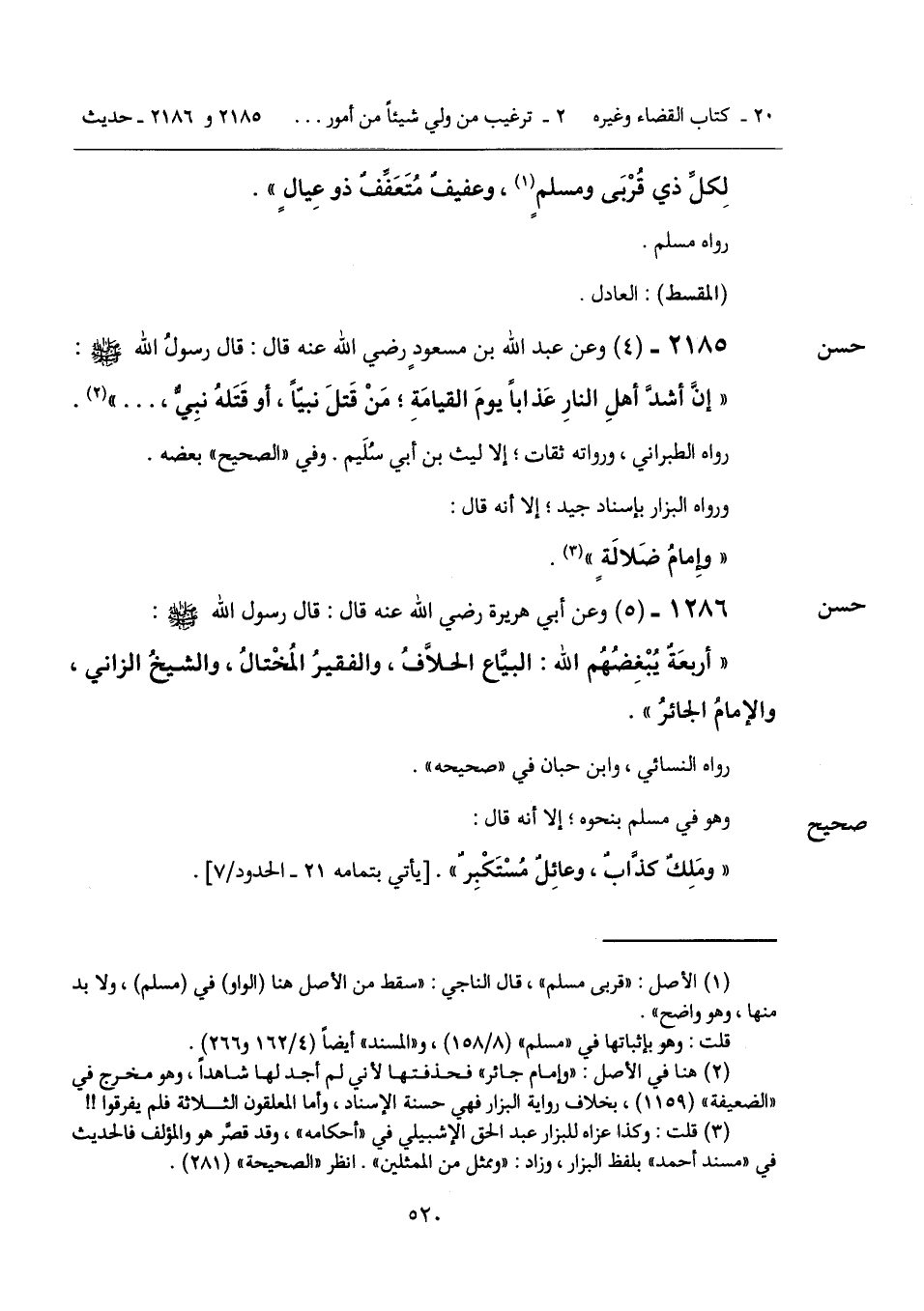 2185 - (4) [حسن] وعن عبد الله بن مسعودٍ رضي الله عنه قال: قال رسولُ الله - صَلَّى اللهُ عَلَيْهِ وَسَلَّمَ -: