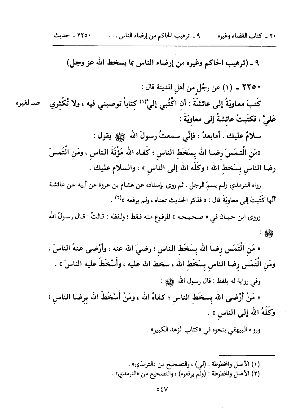 9 - (ترهيب الحاكم وغيره من إرضاء الناس بما يسخط الله عز وجل).