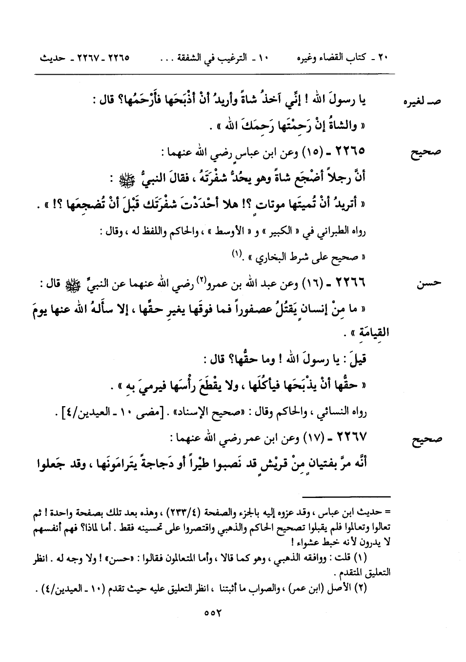 2266 - (16) [حسن] وعن عبد الله بن عمرو (¬2) رضي الله عنهما عن النبيِّ - صَلَّى اللهُ عَلَيْهِ وَسَلَّمَ - قال: