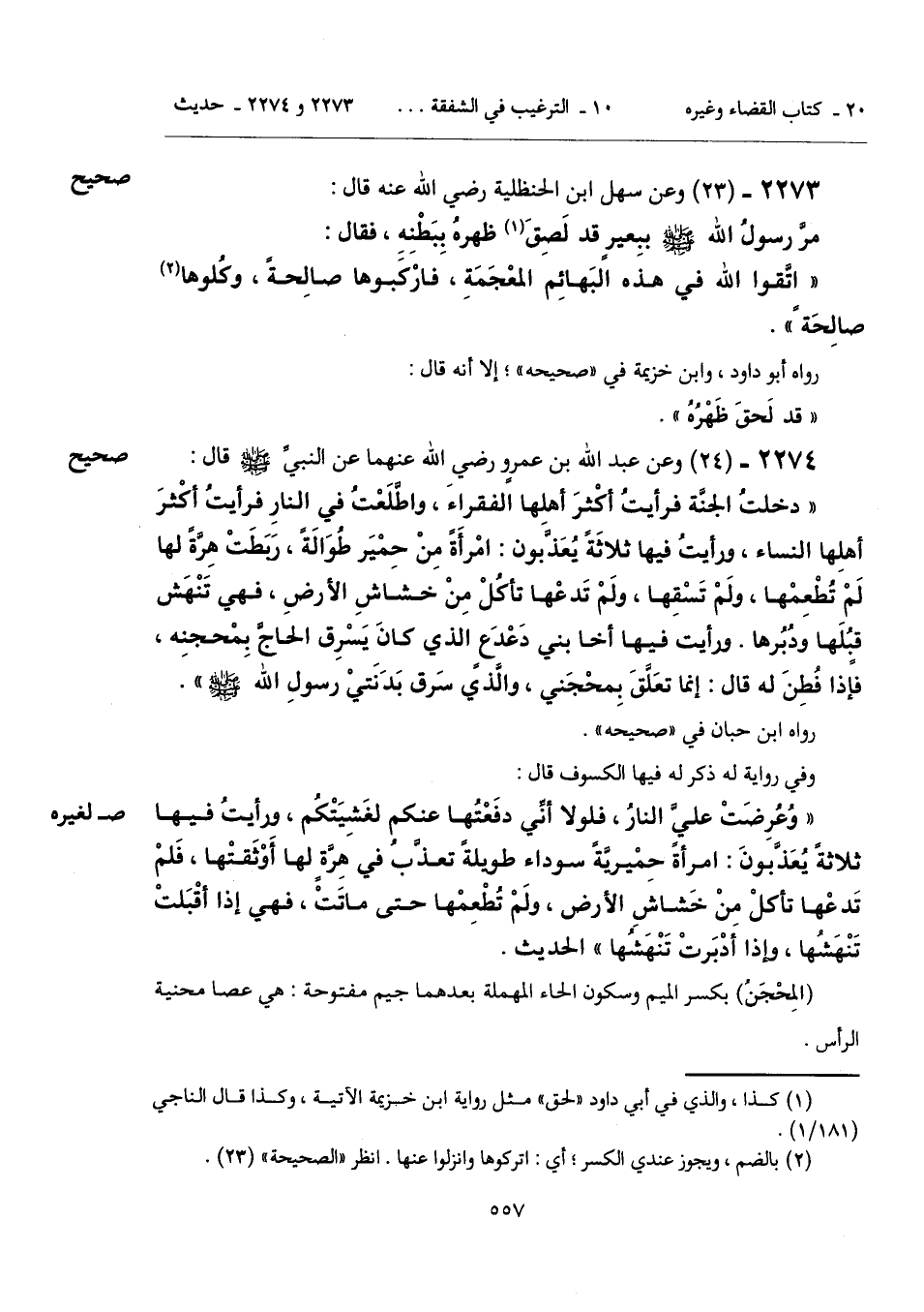2273 - (23) [صحيح] وعن سهل ابن الحنظلية رضي الله عنه قال: