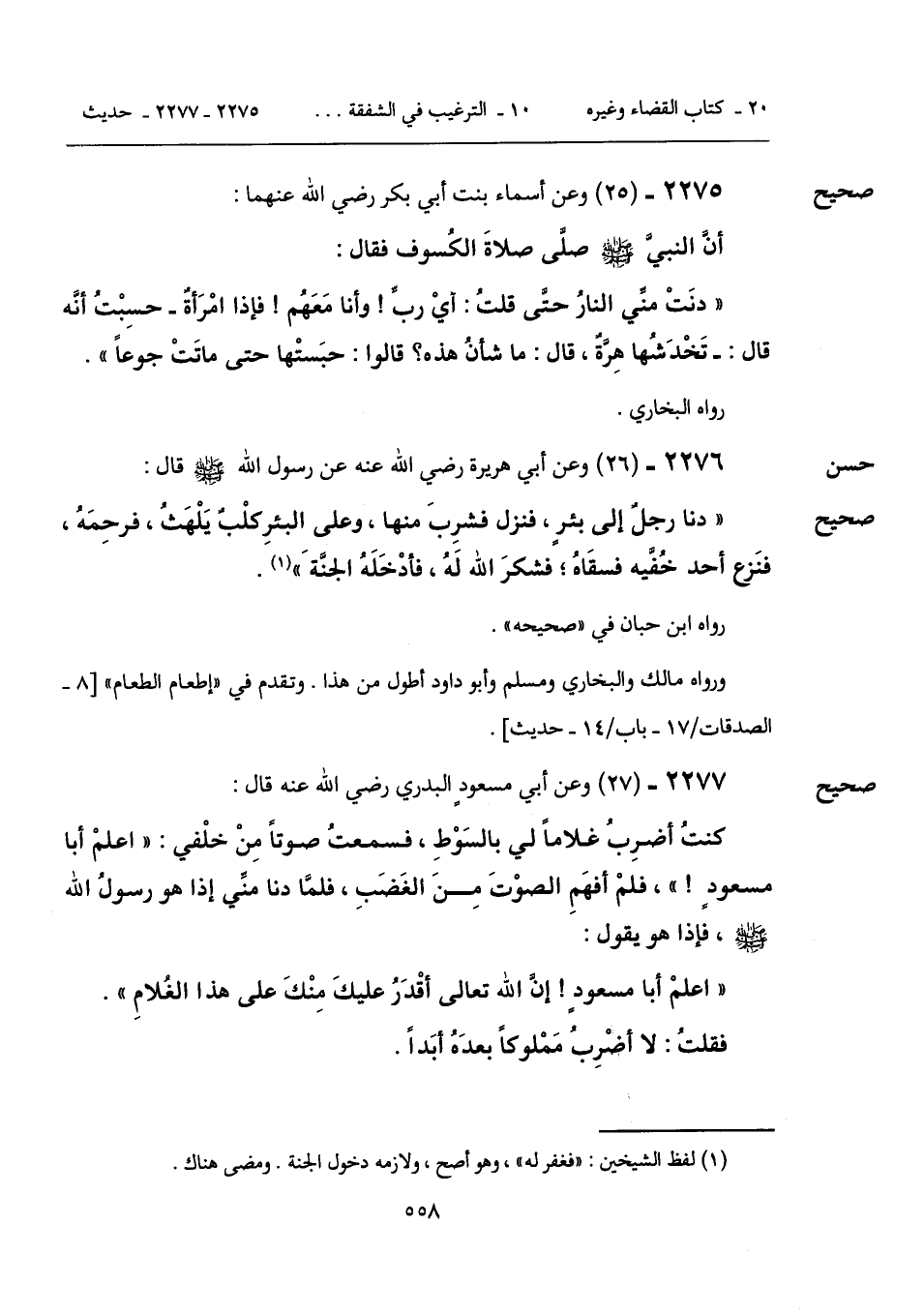 2277 - (27) [صحيح] وعن أبي مسعودٍ البدري رضي الله عنه قال: