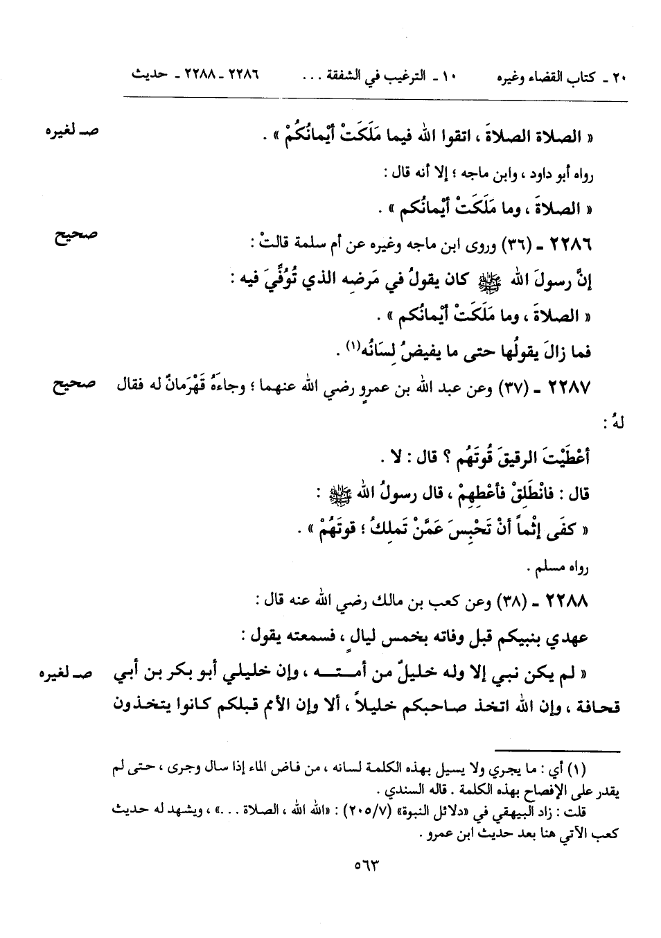 قلت: زاد البيهقي في "دلائل النبوة" (7/ 205): "الله الله، الصلاة. . ."، ويشهد له حديث كعب الآتي هنا بعد حديث ابن عمرو.
