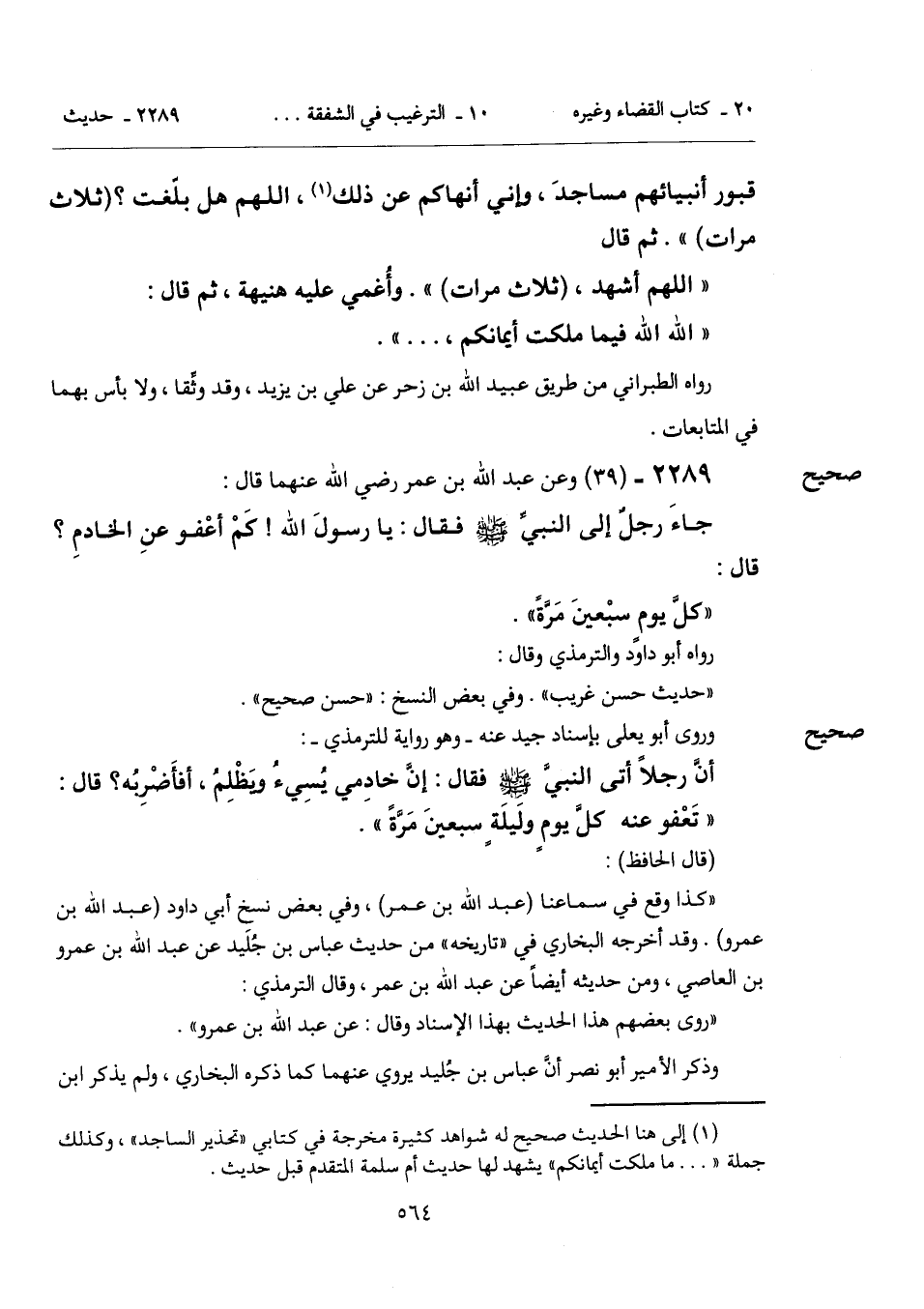 جاءَ رجلٌ إلى النبيِّ - صَلَّى اللهُ عَلَيْهِ وَسَلَّمَ - فقال: يا رسولَ الله! كَمْ أعْفو عن الخادم؟ قال: