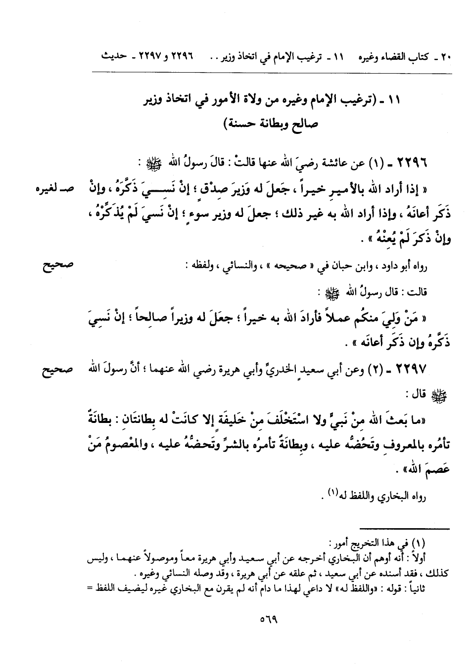 11 - (ترغيب الإمام وغيره من ولاة الأمور في اتخاذ وزير صالح وبطانة حسنة).