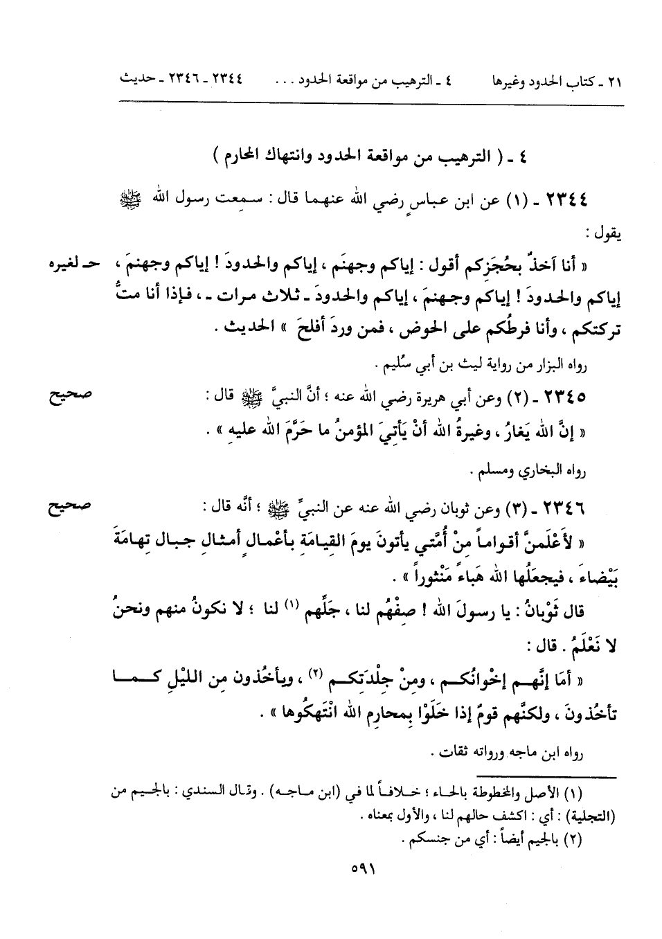 2346 - (3) [صحيح] وعن ثوبان رضي الله عنه عن النبيِّ - صَلَّى اللهُ عَلَيْهِ وَسَلَّمَ -؛ أنَّه قال: