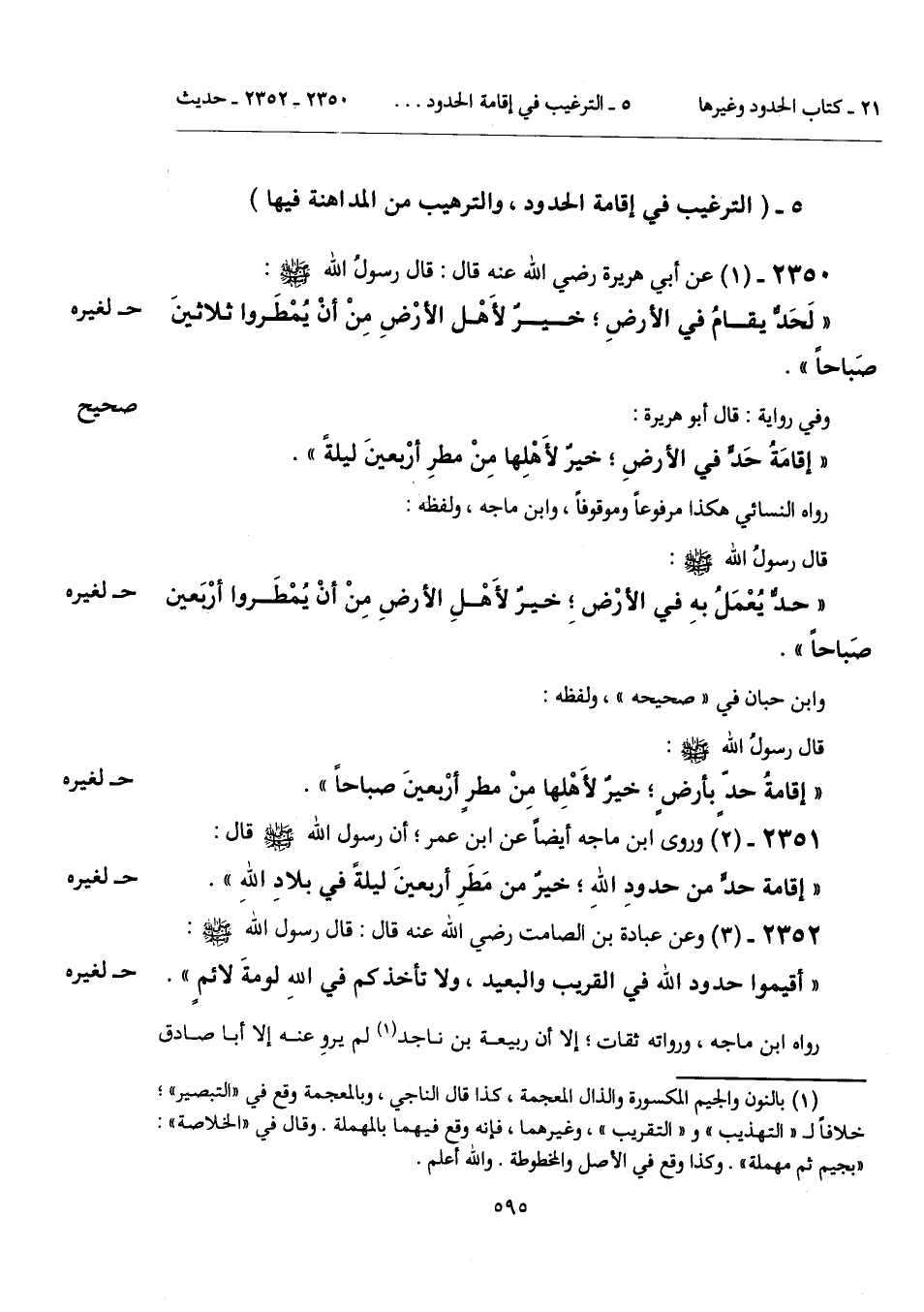 "إقامةُ حدٍّ بأرضٍ، خيرٌ لأَهْلِها مِنْ مطرٍ أرْبَعينَ صباحاً".