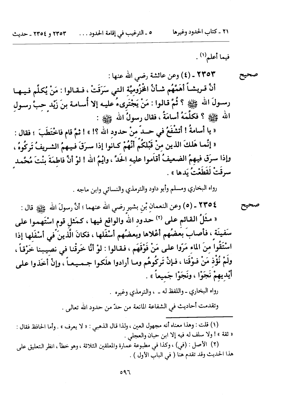 2354 - (5) [صحيح] وعن النعمانِ بْنِ بشيرٍ رضي الله عنهما؛ أنَّ رسولَ الله - صَلَّى اللهُ عَلَيْهِ وَسَلَّمَ - قال: