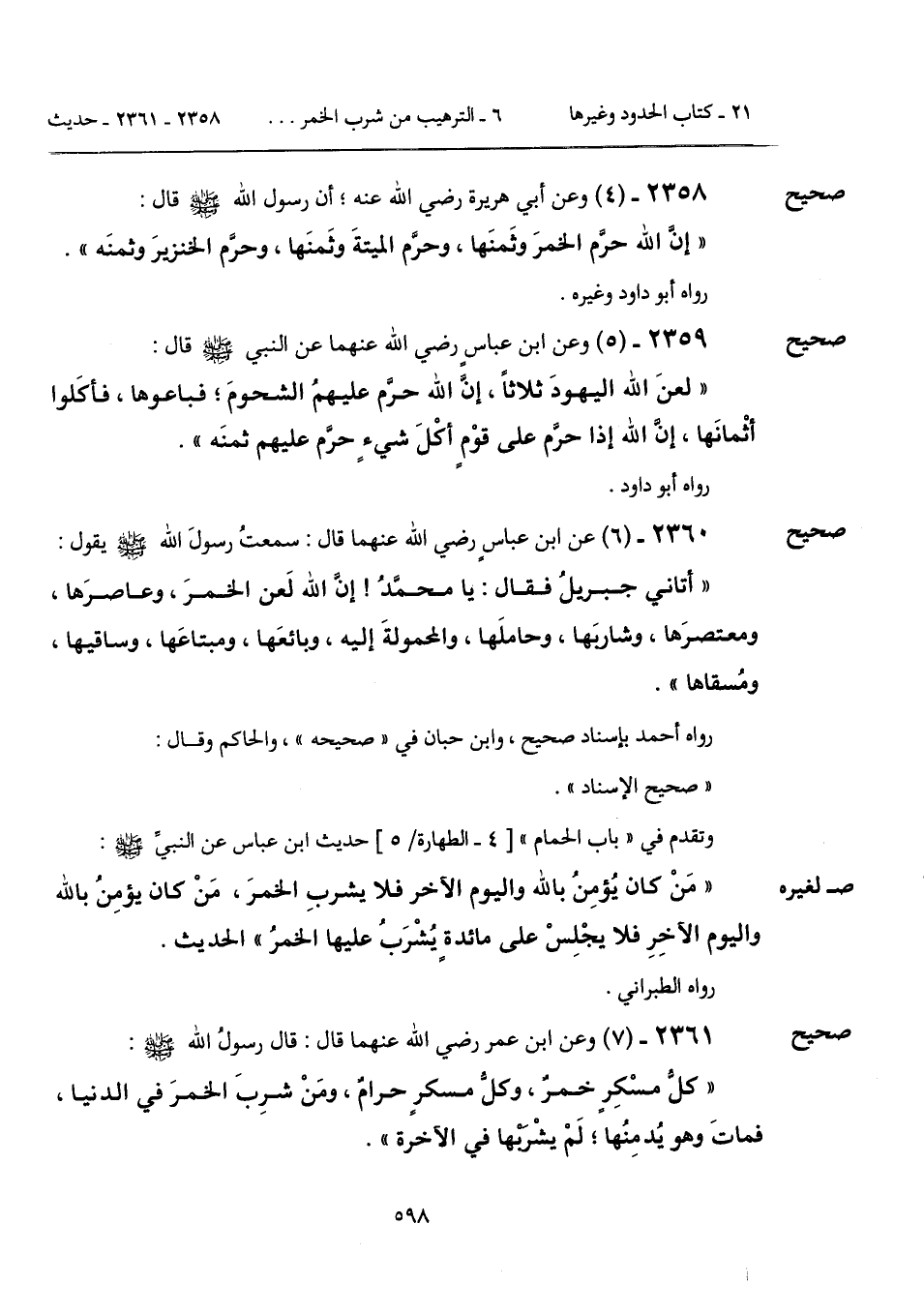 2359 - (5) [صحيح] وعن ابن عباسٍ رضي الله عنهما عن النبي - صَلَّى اللهُ عَلَيْهِ وَسَلَّمَ - قال: