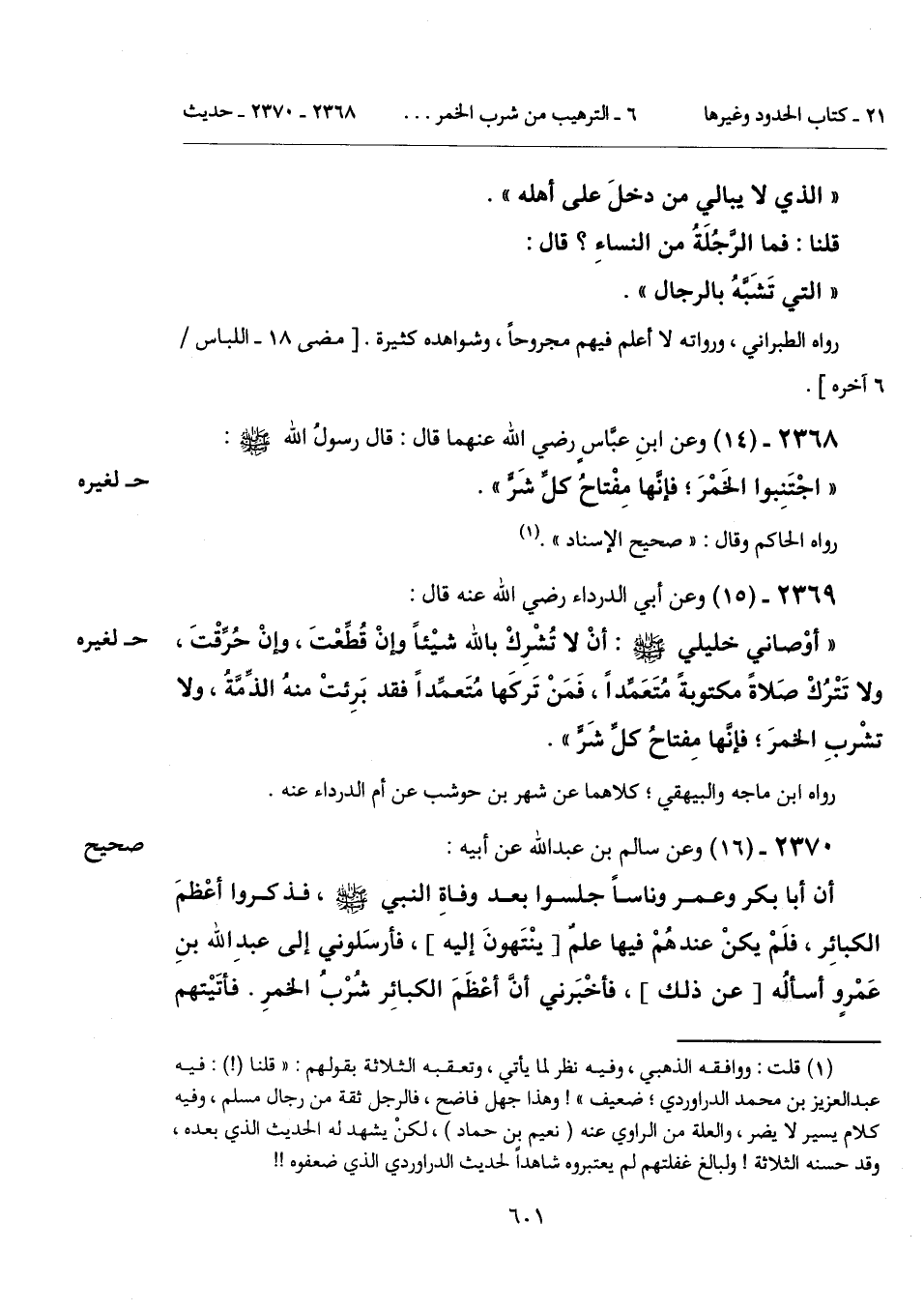 2370 - (16) [صحيح] وعن سالم بن عبد الله عن أبيه: