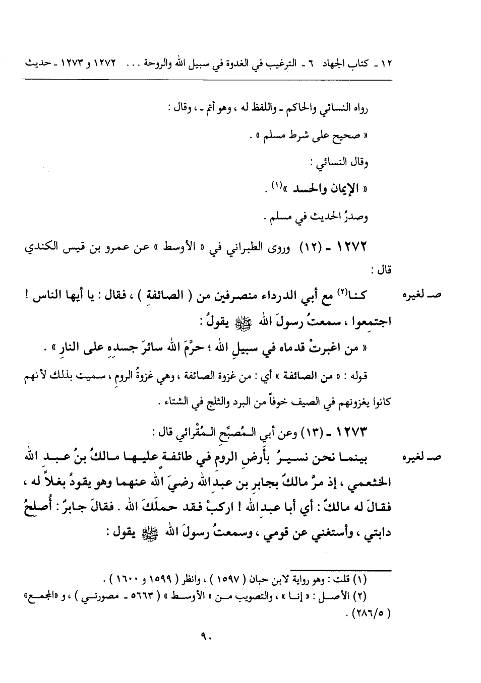 "من اغبرتْ قدماه في سبيلِ الله؛ حرَّمَ الله سائرَ جسدِهِ على النارِ".
