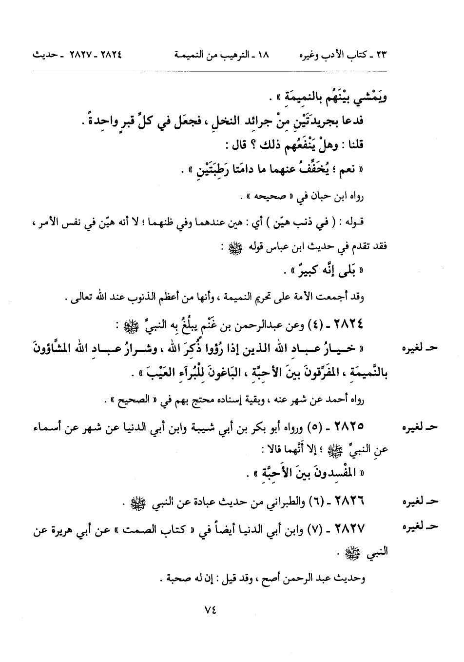"خيارُ عبادِ الله الذين إذا رُؤوا ذُكِرَ الله، وشرارُ عبادِ الله المشَّاؤونَ بالنَّميمَةِ، المفَرِّقونَ بينَ الأحِبَّةِ، البَاغونَ لِلْبُرآءِ العَيْبَ".
