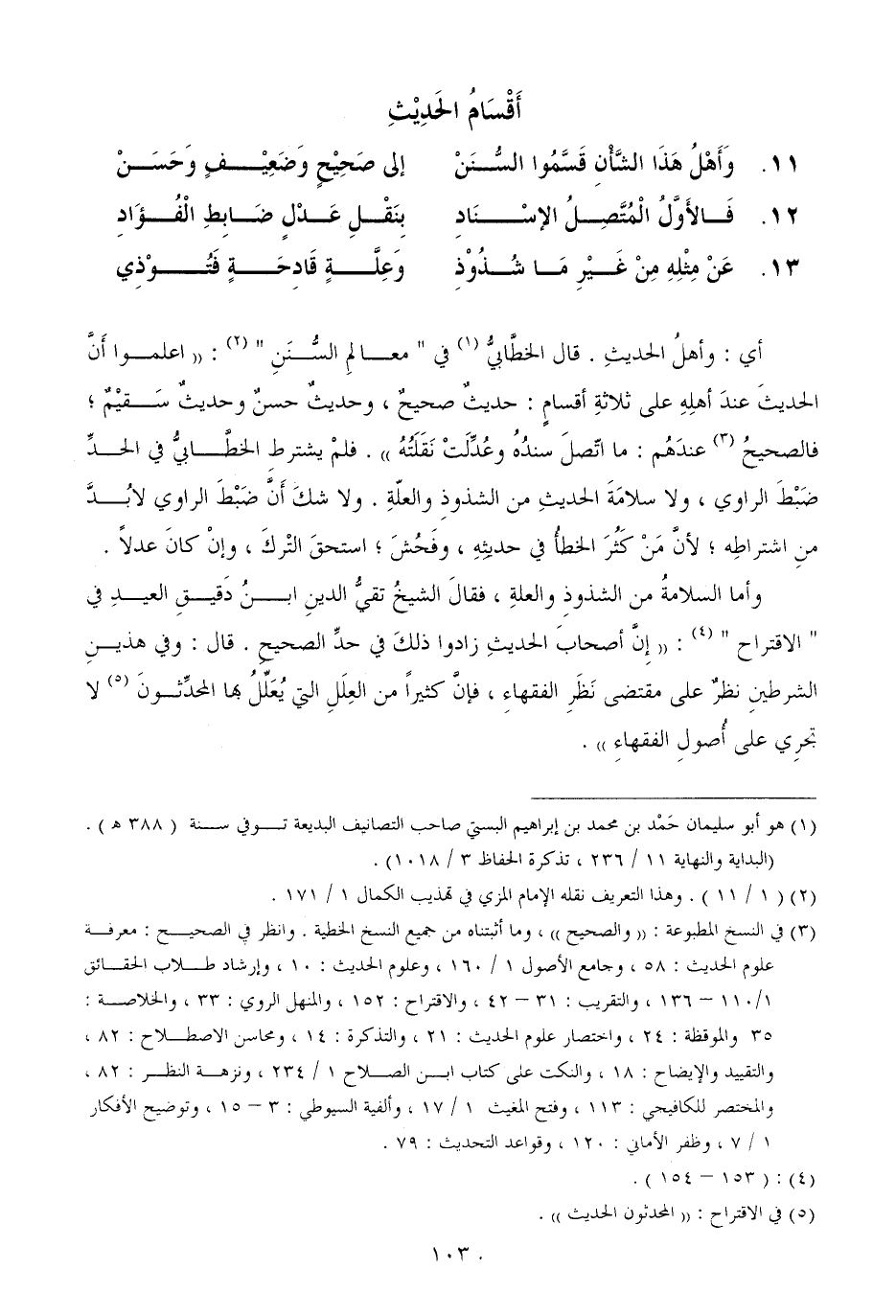 11.... وَأَهْلُ هَذَا الشَّأْنِ قَسَّمُوا السُّنَنْ ... إلى صَحِيْحٍ وَضَعِيْفٍ وَحَسَنْ