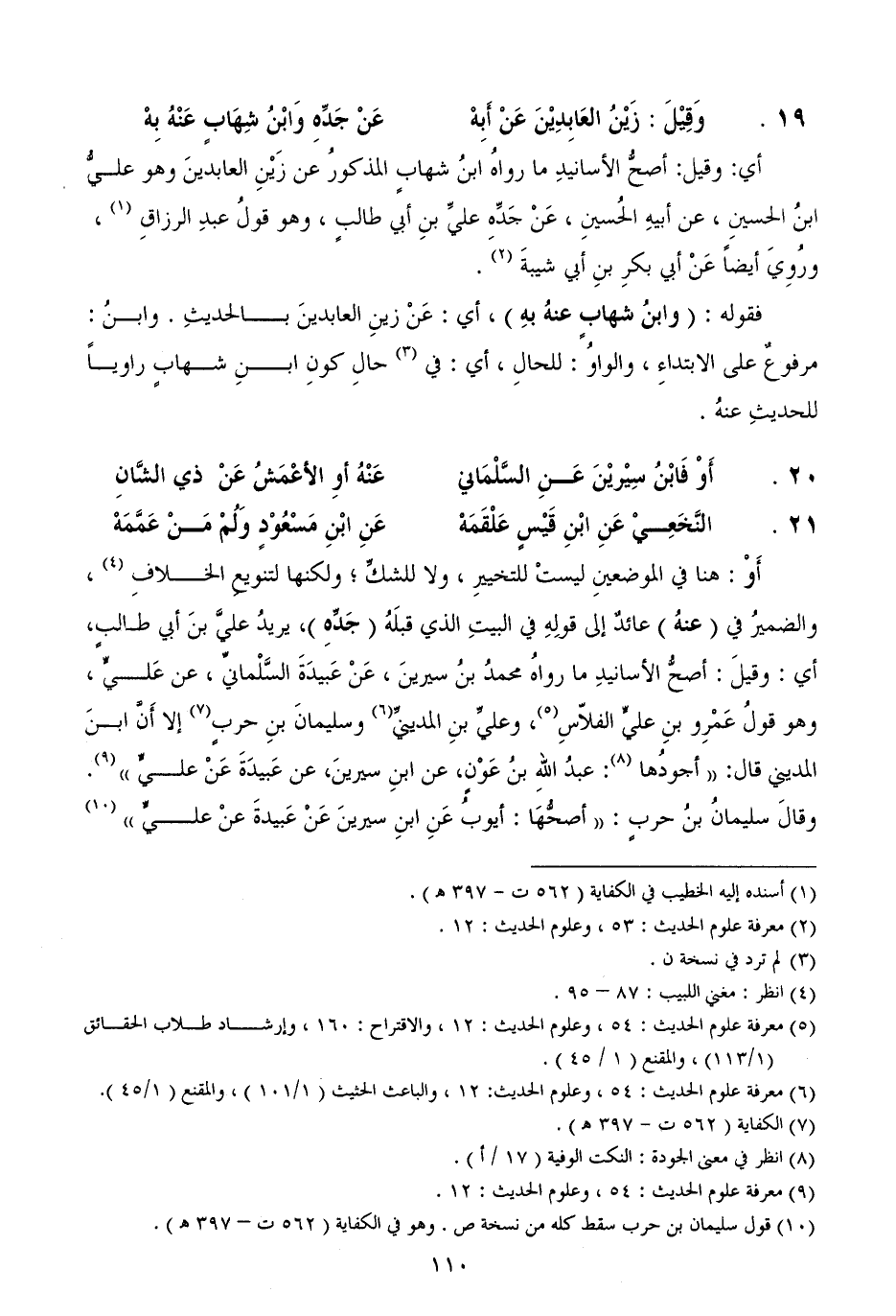 أَوْ: هنا في الموضعينِ ليستْ للتخييرِ، ولا للشكِّ؛ ولكنها لتنويعِ الخلافِ، والضميرُ في (عنهُ) عائدٌ إلى قولِهِ في البيتِ الذي قبلَهُ (جَدِّهِ) ، يريدُ عليَّ بنَ أبي طالبٍ، أي: وقيلَ: أصحُّ الأسانيدِ ما رواهُ محمدُ بنُ سيرينَ، عَنْ عَبيدَةَ السَّلْمانيِّ، عن عَليٍّ، وهو قولُ عَمْرِو بنِ عليٍّ الفلاّسِ، وعليِّ بنِ المدينيِّ وسليمانَ بنِ حربٍ إلا أَنَّ ابنَ المديني قال: ((أجودُها: عبدُ اللهِ بنُ عَوْنٍ، عن ابنِ سيرينَ، عن عَبيدَةَ عَنْ عليٍّ)) .