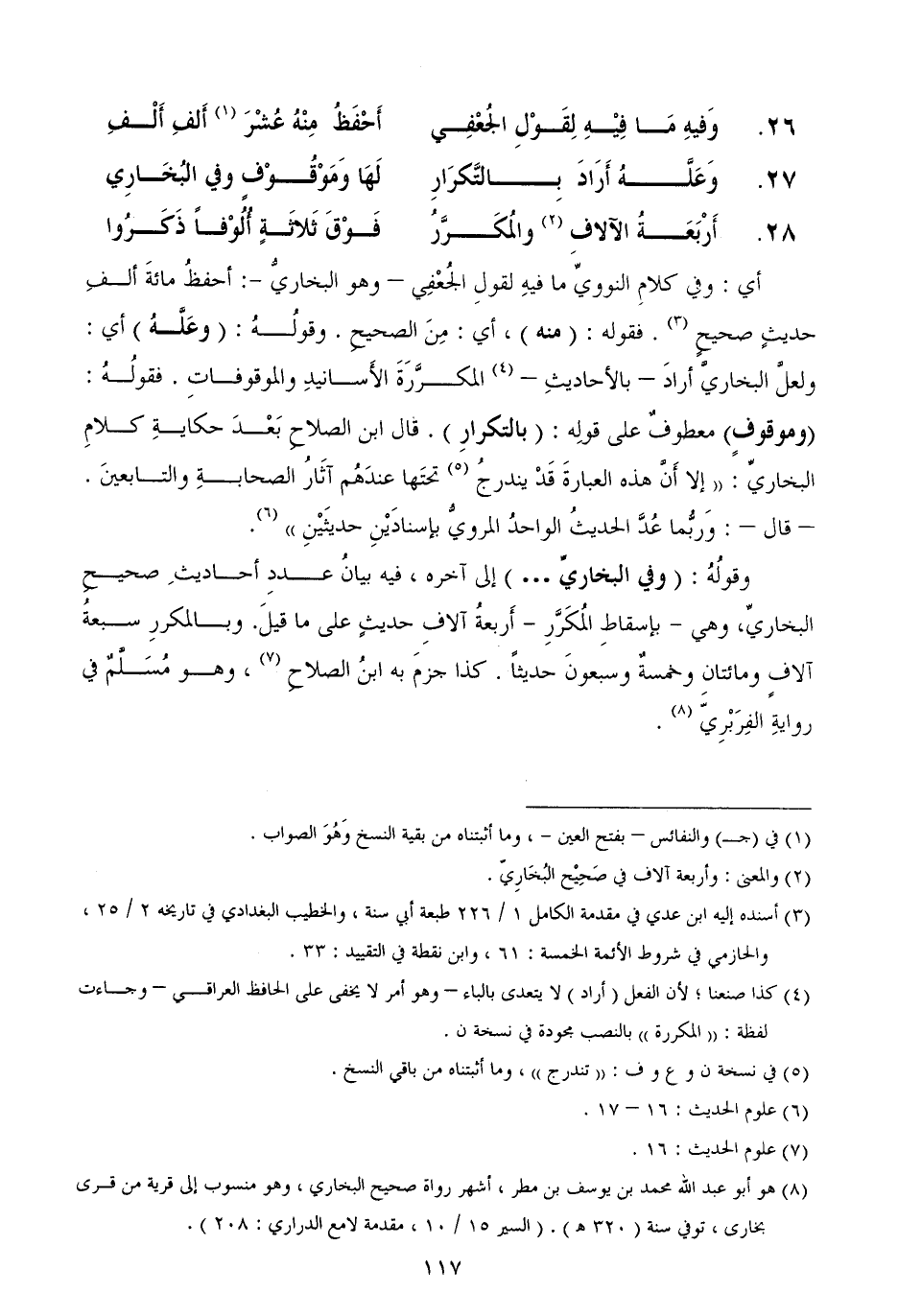 26.... وَفيهِ مَا فِيْهِ لِقَوْلِ الجُعْفِي ... أَحْفَظُ مِنْهُ عُشْرَ أَلفِ أَلْفِ
