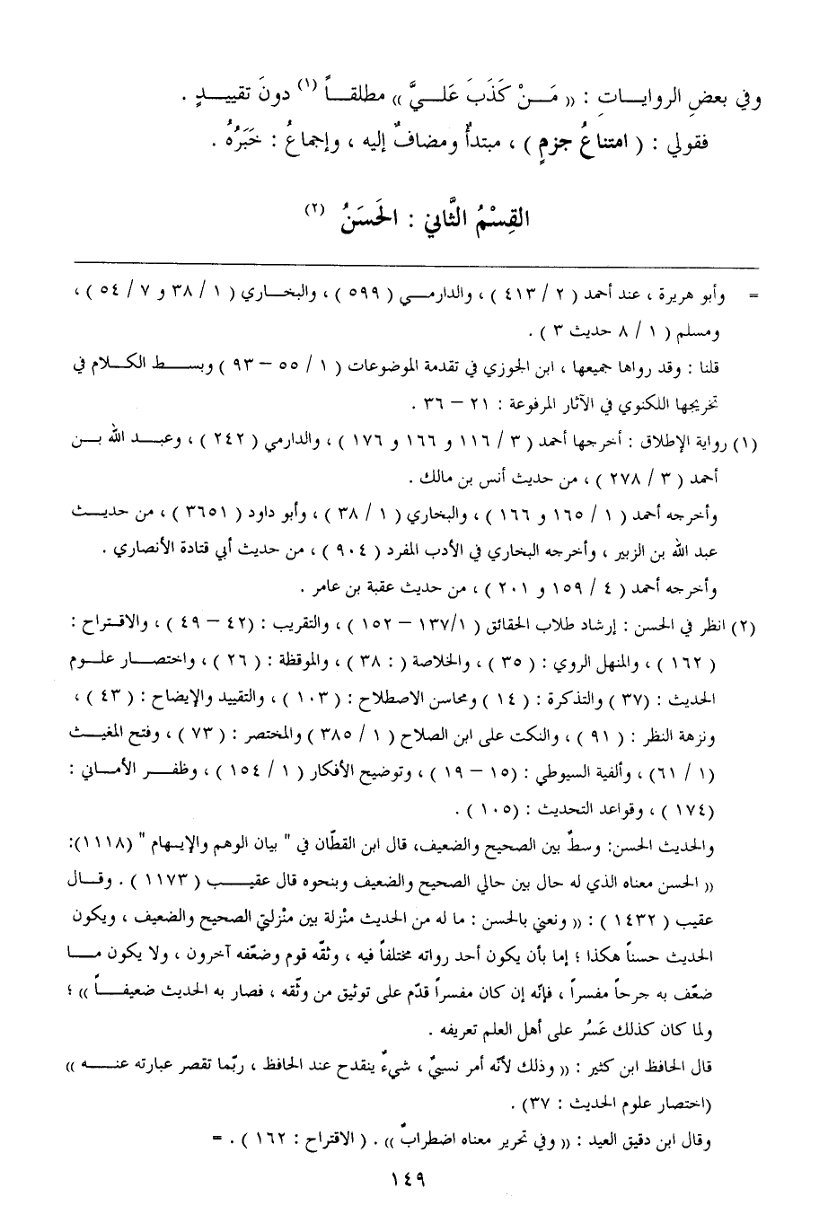 وفي بعضِ الرواياتِ: ((مَنْ كَذَبَ عَليَّ)) مطلقاً دونَ تقييدٍ.