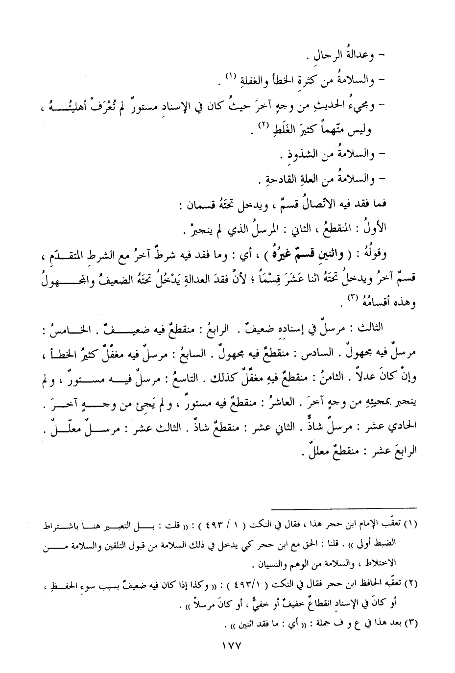 الثالث مرسلٌ في إسنادِهِ ضعيفٌ الرابعُ منقطعٌ فيه ضعيفٌ الخامسُ مرسلٌ فيه مجهولٌ السادس منقطعٌ فيه مجهولٌ السابعُ مرسلٌ فيه مغفَّلٌ كثيرُ الخطأ، وإنْ كانَ عدلاً الثامنُ منقطعٌ فيهِ مغفَّلٌ كذلك التاسعُ مرسلٌ فيه مستورٌ، ولم ينجبر بمجيئِهِ من وجهٍ آخرَ العاشرُ منقطعٌ فيه مستورٌ، ولم يَجِئ من وجهٍ آخرَ الحادي عشر مرسلٌ شاذٌّ الثاني عشر منقطعٌ شاذٌ الثالث عشر مرسلٌ معلّلٌ الرابعَ عشر منقطعٌ معللٌ