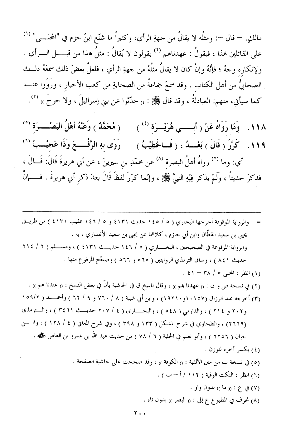 118.... وَمَا رَوَاهُ عَنْ (أبِي هُرَيْرَةِ) ... (مُحَمَّدٌ) وَعَنْهُ أهْلُ البَصْرَةِ