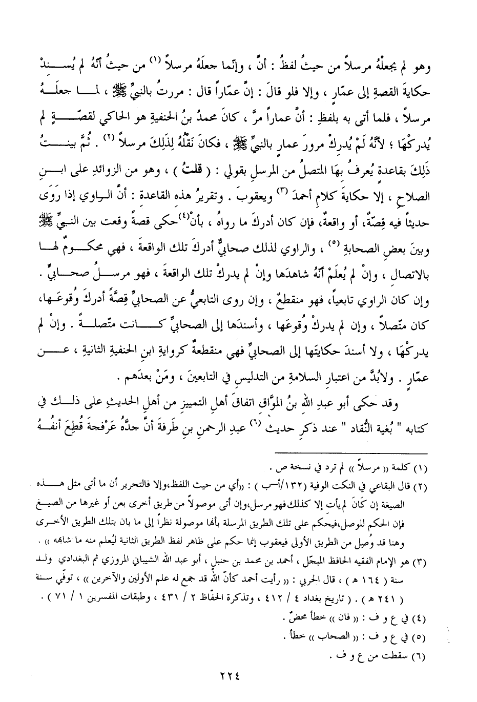 وهو لم يجعلْهُ مرسلاً من حيثُ لفظُ: أنَّ، وإنّما جعلَهُ مرسلاً من حيثُ أنّهُ لم يُسنِدْ حكايةَ القصةِ إلى عمّارٍ، وإلا فلو قالَ: إنَّ عمّاراً قال: مررتُ بالنبيِّ - صَلَّى اللهُ عَلَيْهِ وَسَلَّمَ -، لما جعلَهُ مرسلاً، فلما أتى به بلفظِ: أنَّ عماراً مرَّ، كانَ محمدُ بنُ الحنفيةِ هو الحاكي لقصّةٍ لم يُدركْهَا؛ لأنَّهُ لَمْ يُدرِكْ مرورَ عمارٍ بالنبيِّ - صَلَّى اللهُ عَلَيْهِ وَسَلَّمَ -، فكانَ نَقْلُهُ لِذَلِكَ مرسلاً. ثُمَّ بينتُ ذَلِكَ بقاعدةٍ يُعرفُ بِهَا المتصلُ من المرسلِ بقولي: (قلتُ) ، وهو من الزوائدِ على ابنِ الصلاحِ، إلا حكايةَ كلامِ أحمدَ ويعقوبَ.